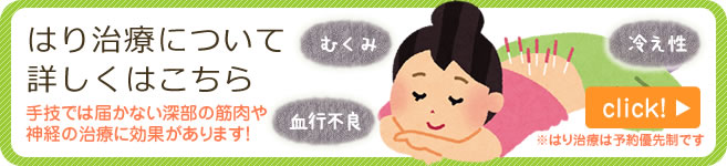 強い炎症の場合には、はり治療が効果的な事もありますのでご相談ください。