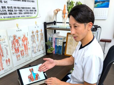 入間市しかくら整骨院では、院長が毎回担当し、原因を分かりやすく説明しながら施術をいたします。